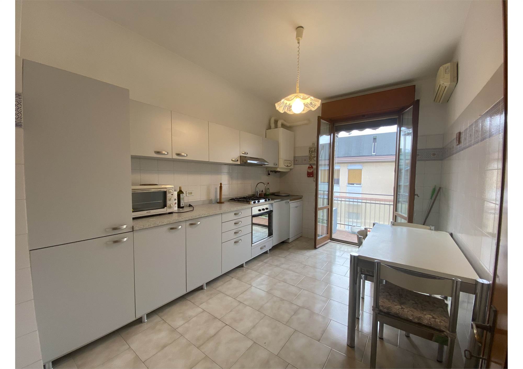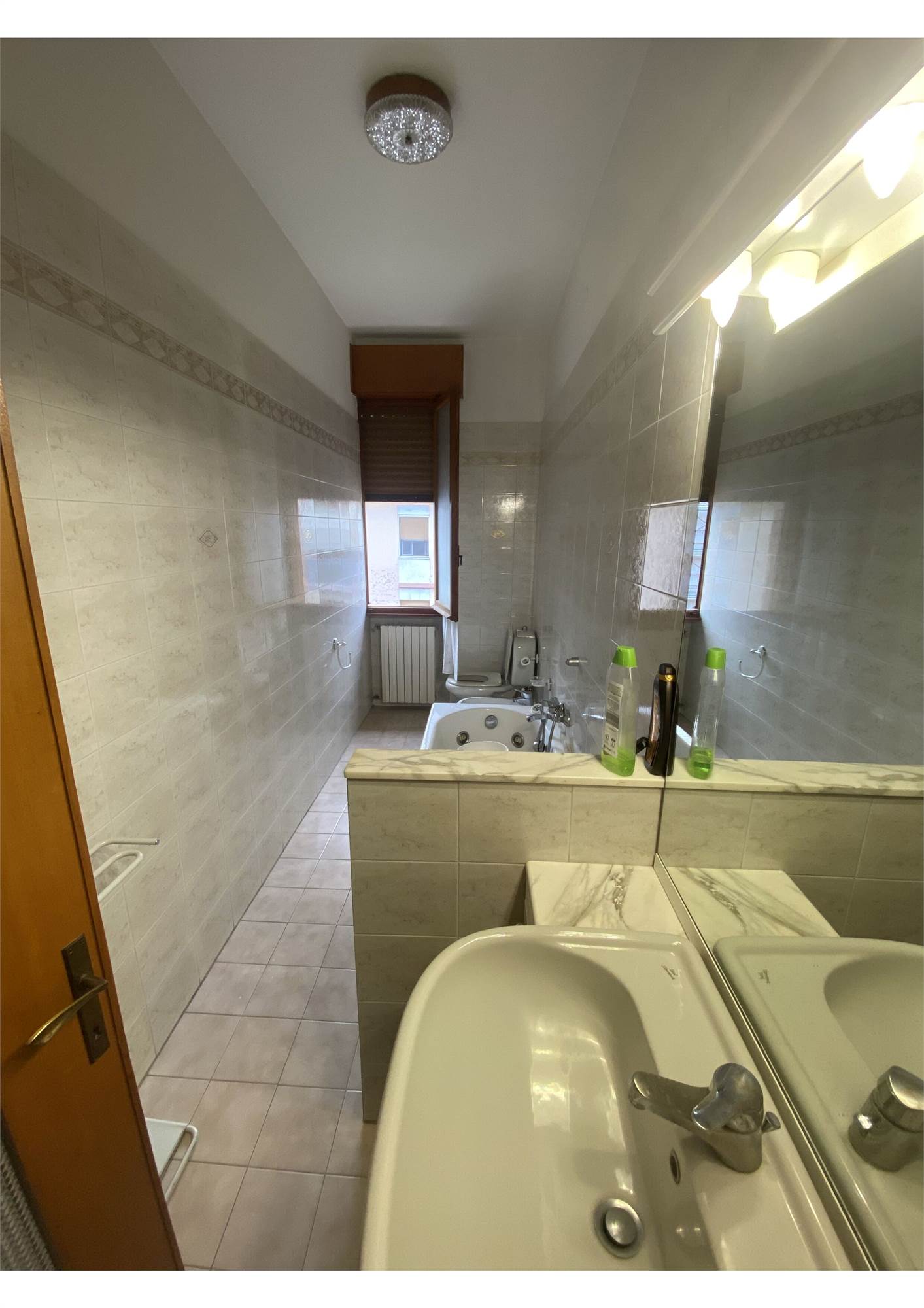 Ampio appartamento al piano terzo (NO ASCENSORE), composto da ingresso in soggiorno spazioso, balcone, cucina abitabile, 3 camere, 2 bagni, posto auto e autorimessa al piano interrato.